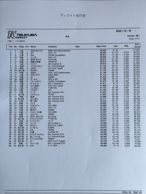 BMW M、ポルシェ、ホンダ車を中心に、参加台数は44台。
