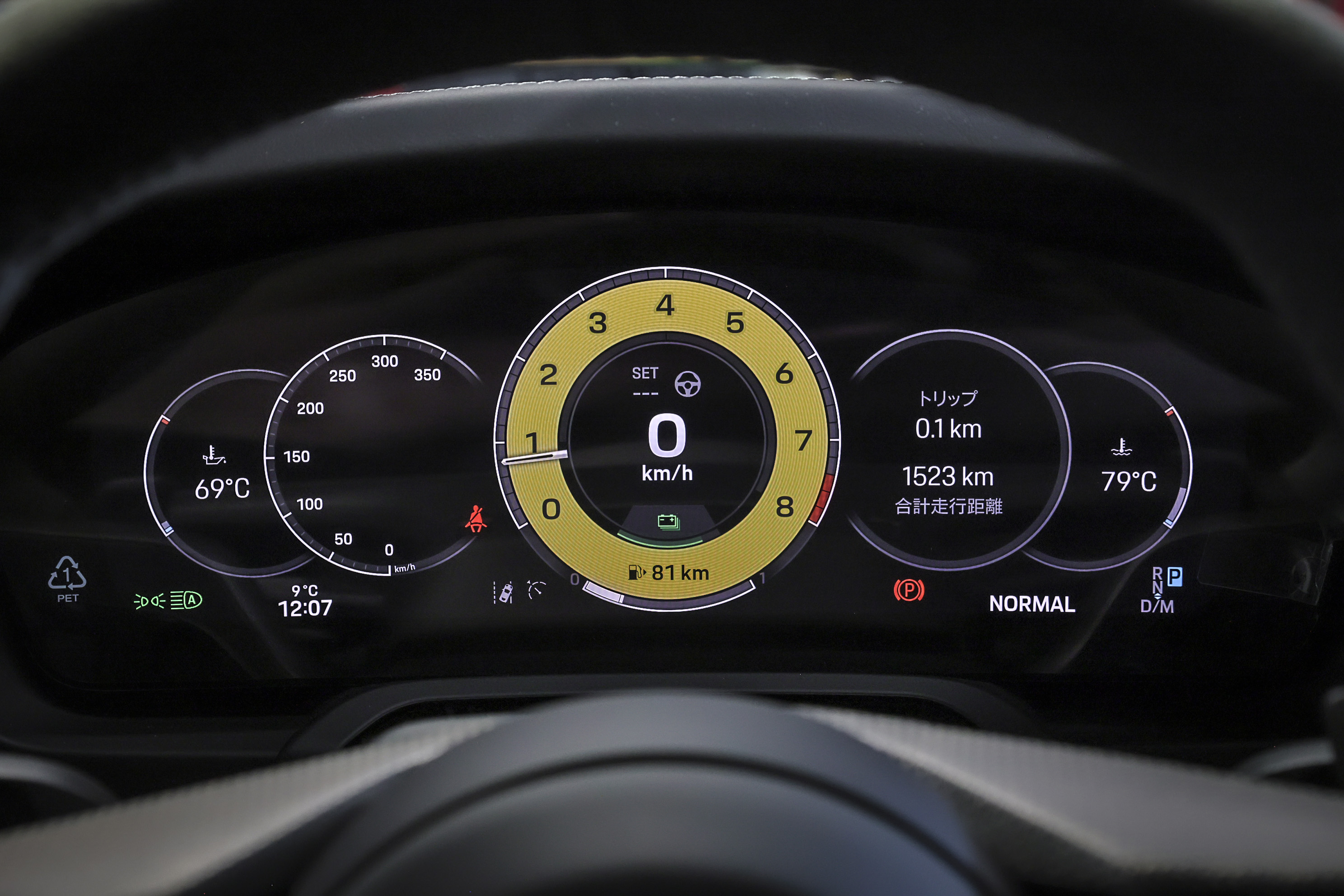 数種類にメーターデザインは切り替えられ、レブカウンター主体のシンプルなものからアシスト機能重視画面、ナビを主体な表示に変えられたりとする中