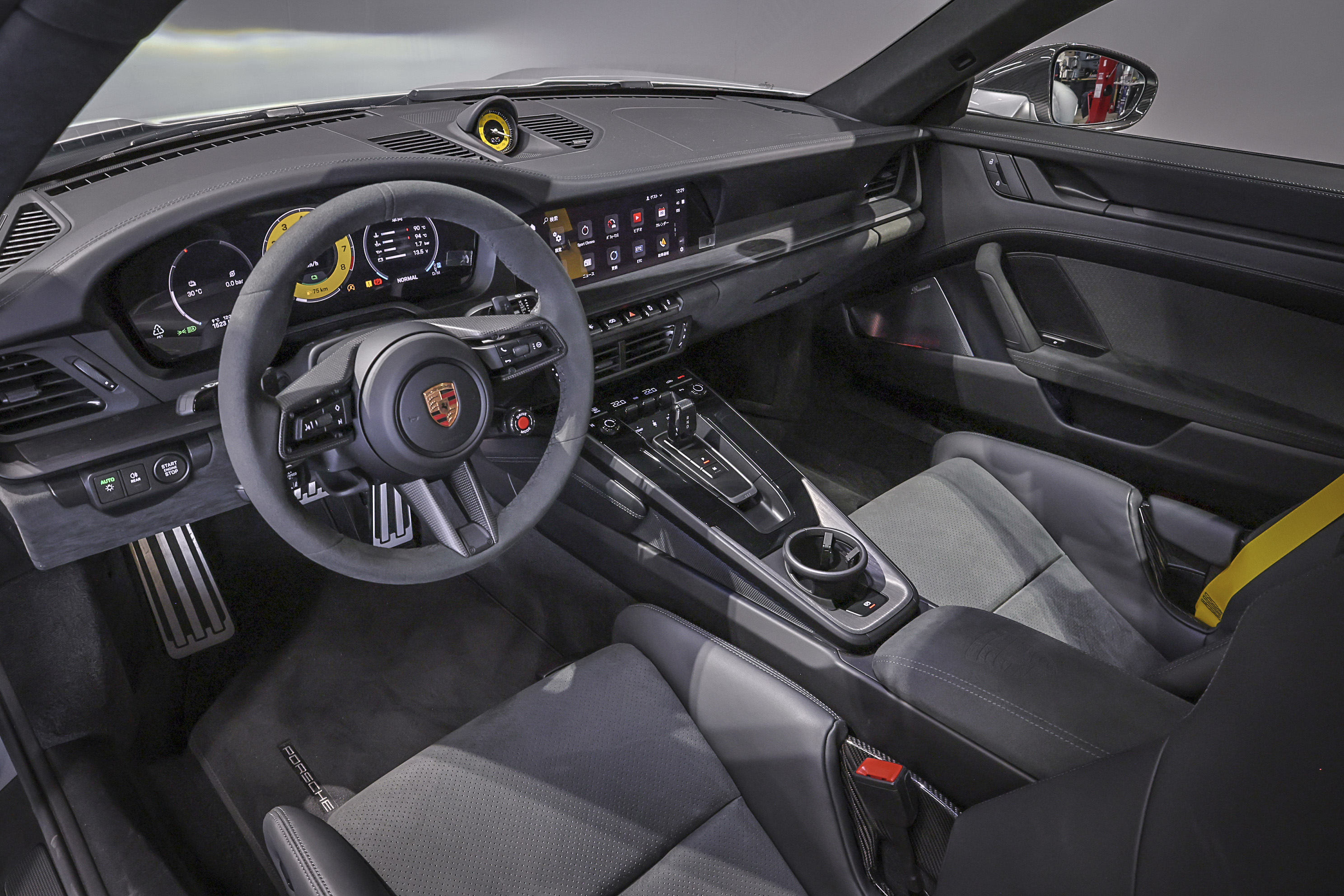 レザーとスエードで構成され、メーターやクロノ、シートベルトをイエローをチョイス。