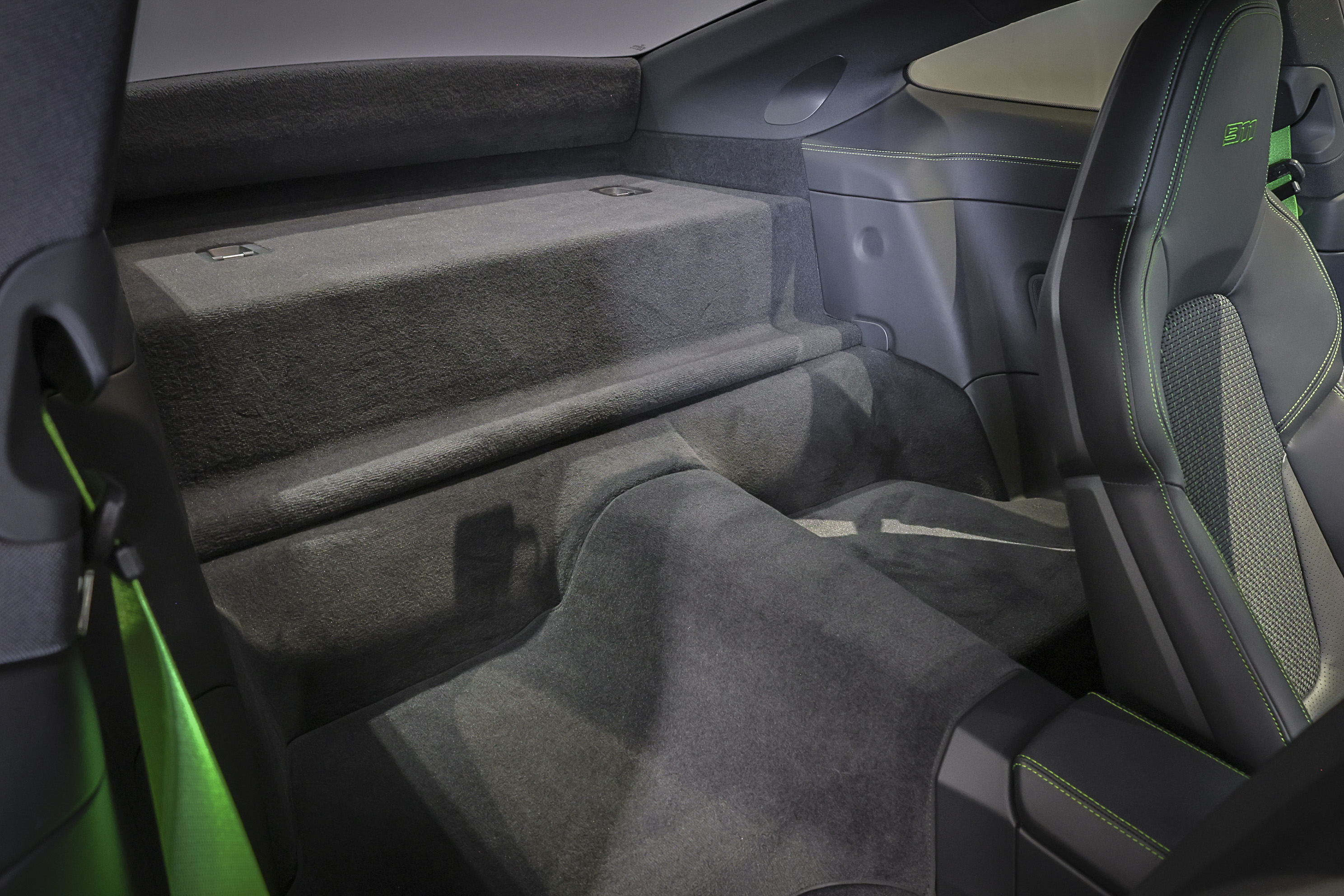 リザードグリーンのシートベルトやステッチ。 スポーティだけれど、どこかカジュアル。
